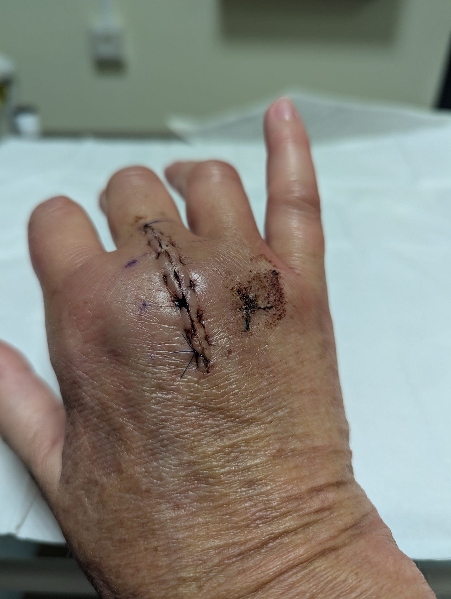I have a growing collection of dog-related scars. My right wrist bears the marks of Salty’s teeth, where he clamped my wrist instead of Sage’s foreleg. In hindsight, I believe I was the better option. There is a six-inch white line that runs down my left shoulder where I now bear a plate and eleven screws. This ragged trail tells the story of the misjudgment of a young bulldog with no sense of boundaries. And the latest acquisition is a two-inch scar over the hump that has become my middle finger knuckle where I intervened in yet another dog fight. It is thin and covers the two pins that now hold my knuckle together.